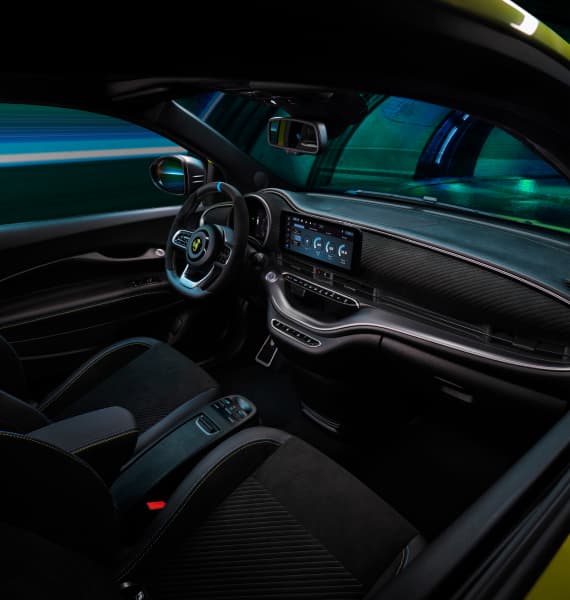 Avec son nouvel écran tactile 10,25" et le système Uconnect™, Nouvelle Abarth 500e vous ouvrira l'univers de la performance avec des pages dédiées et ce à portée de doigts. Le style et la sportivité ne peuvent être mieux exprimés qu'à bord de Nouvelle Abarth 500e : le tableau de bord en Alcantara offre une sensation unique qui allie l'esthétique premium à un design fonctionnel, tout en étant parfaitement assorti aux inserts du volant trois branches et aux sièges Sport.