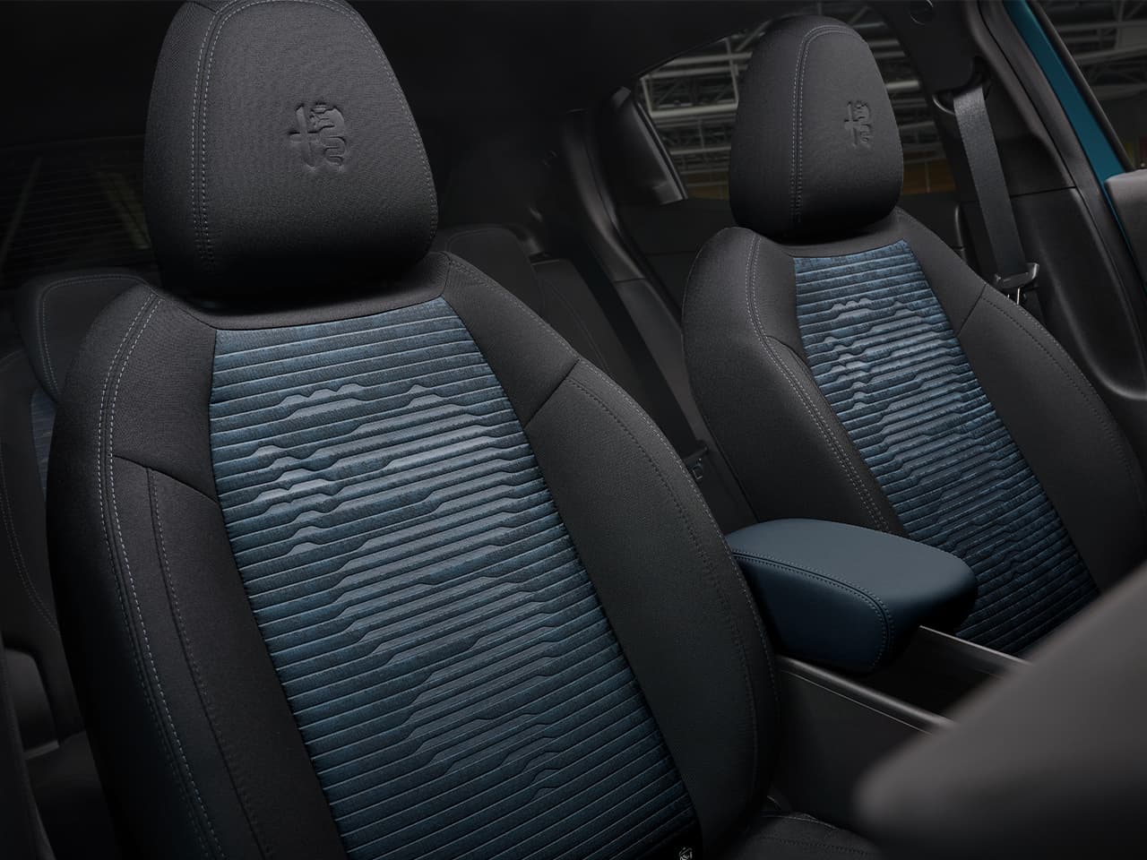 Le modèle Icona présente des sièges innovants en tissu noir et bleu avec un effet camouflage, ornés de l'emblème de la marque au Biscione.Les sièges Spiga se distinguent par leur tissu noir et rouge, méticuleusement fabriqué à Milan, présentant le motif emblématique du Scudetto. Réglables électroniquement, ils comprennent une fonction massante pour plus de confort.
