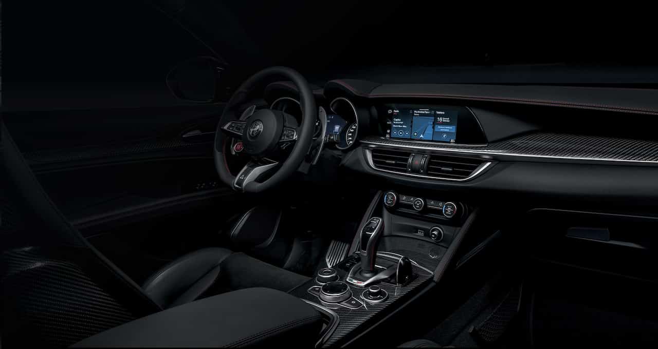 Prenez du plaisir en vous installant dans l’intérieur chic et confortable du Stelvio Quadrifolgio ! Il dispose d’un poste de pilotage en cuir, qui lui confère un design raffiné. Les sièges, inspirés de ceux des voitures de course, assurent un maximum de confort sur les routes. Les sièges avant sont chauffants, et proposent huit réglages. Accédez aux informations sur la conduite et les performances du véhicule depuis son large écran d’infodivertissement.